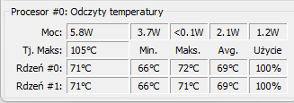 1. Pomimo informacji podanych przez producenta, procesor Intel Core i7-5650U 2,2 GHz nie pracował w standardowym taktowaniu 2,2 GHz, lecz od razu uruchamiał się w pełnym trybie Turbo Boost 3,2 GHz, co prowadziło do nadmiernego nagrzewania. Ograniczenie maksymalnej wydajności w ustawieniach zasilania rozwiązało problem – MacBook przestał się przegrzewać (temperatura spadła z 100–105°C do 68–72°C). Choć działanie systemu stało się nieco wolniejsze, brak nagrzewania uważam za znaczący atut.